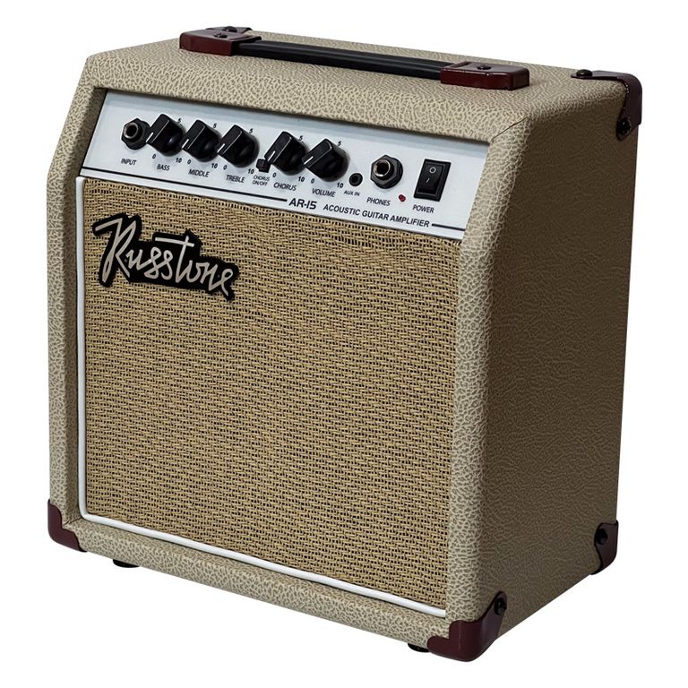 Russtone AR-15 - комбо-усилитель для акустической гитары, Мощность: 15 ватт, Динамик: 6,5", Регулировки: Громкость, эквалайзер, Эффекты: Chorus, Эквалайзер: трёхполосный